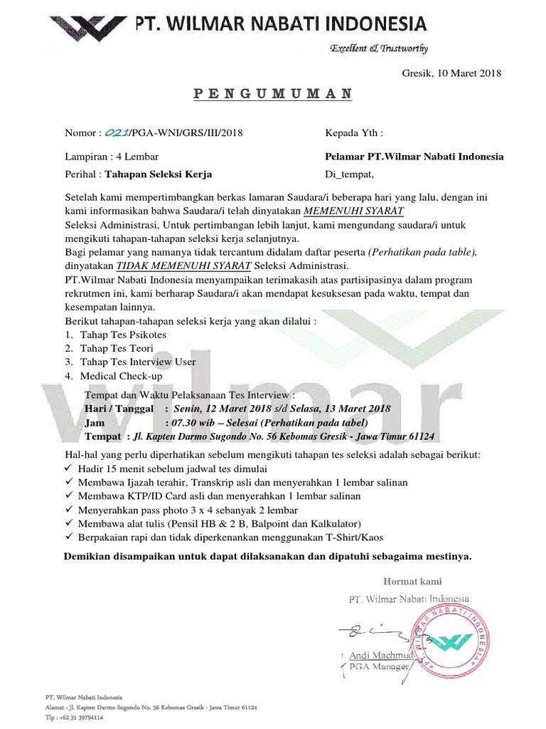 Lihat juga info lowongan dari wilmar group dengan total 0 lowongan. Lihat profil lengkapnya di linkedin dan temukan koneksi dan pekerjaan galuh di perusahaan yang serupa. Contoh soal tiu tes intelegensi umum 2019 pembahasan kali ini akan contoh soalcoid paparkan beberapa contoh soal tiu tes intelegensi umum 2019 dilengkapi dengan jawabannya. Triputra group memiliki empat lini bisnis antara lain agribusiness manufacturing mining trading services. In the interview process, you will be asked about your related experience in the position. Kami adalah pengolahan dan bisnis global terbesar untuk palm oil dan lauric oil. Karena pas ane tanya dua minggu jeda antara submit lamaran ke pengumuman seleksi administrasi. Lihat profil galuh ramadhan di linkedin, komunitas profesional terbesar di dunia. Dan sampai sekarang gw gk dapet itu pengumuman dan gw dah yakin kalo gk lolos, so buat kalian ini pengalaman gw jadiin pembelajaran yaa. Wilmar group indonesia adalah group terkemuka di asia yang bergerak dibidang agribisnis & industri terkait. Original posted by messzz agan agan sekalian tlg share donk pengalaman agan yg pernah kerja di wilmar. Dan saya ingin tahu bagaimana tahap penerimaan bt kerja di wilmar. Setelah menyelesaikan lima tes itu, para peserta akan dipersilakan menunggu sekitar 1 jam kemudian karena semua hasil tes psikotes akan segera diumumkan.