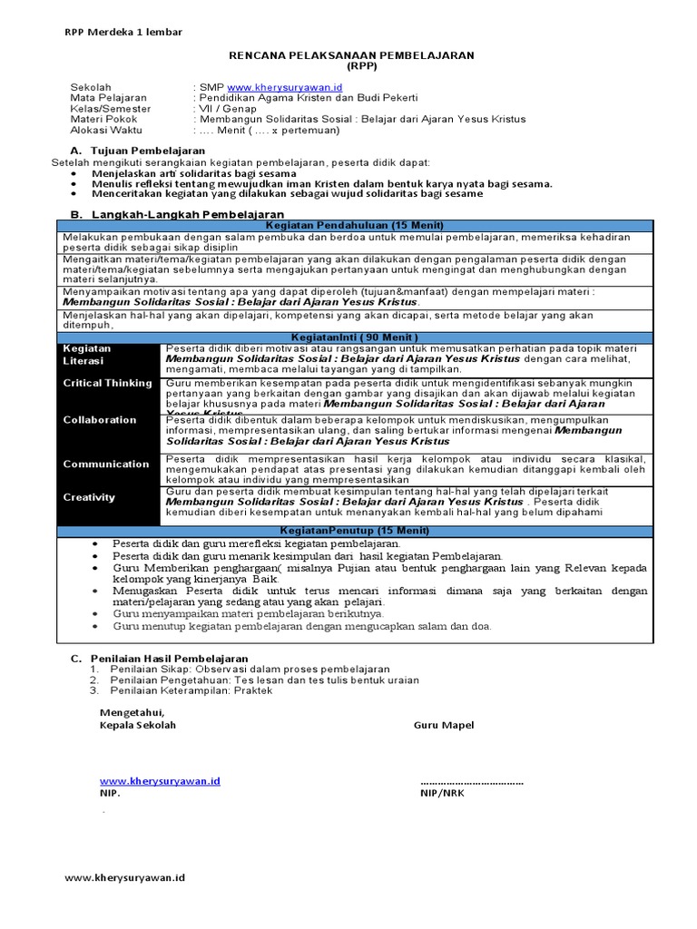 Rpp 1 Lembar Pendidikan Agama Kristen Smp - Download Rpp 1 Lembar Agama Kristen Kelas 10 Semester 2 Situs Guru : Sebagai tolok ukur kebehasilan pembelajaran di kelas c.