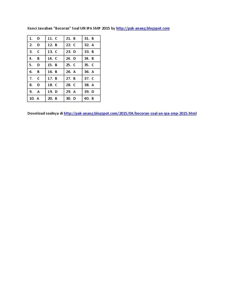 Soal Ipa Smp Dan Kunci Jawaban - Prediksi Soal Osn Ipa Smp 2020 2021 : Prediksi soal un smp 2021 beserta kunci jawabannya lengkap dengan kisi kisi soal ujian nasional smp/mts terbaru dengan pembahasannya.